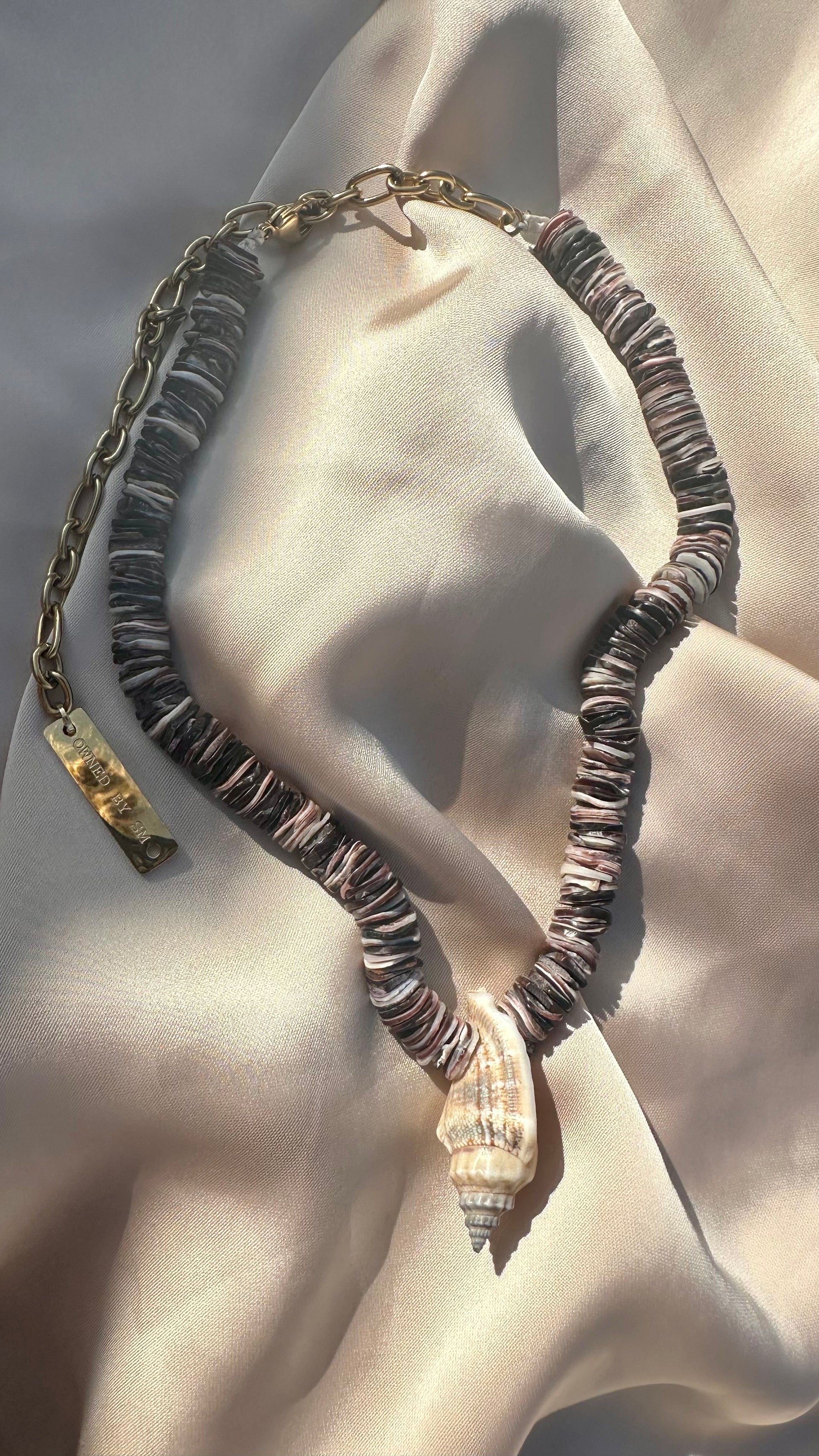 צ׳וקר צדפות טבעיות בגווני חום עמוק חובקים תליון קונכייה טבעית דומיננטית המנצנצת באור השמש. שילוב אקזוטי שנושא ריח של ים וחופש. מושלמת לנשמה נוודית שלא מפחדת לבלוט. מגיעה עם 10 ס״מ שרשרת הארכה.